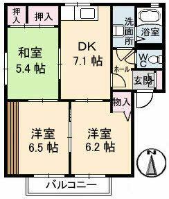 3DK(DK7.1帖 和室5.4帖 洋室6.5帖 洋室6.2帖) |